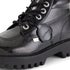 Meet the Kizziie Hi. Upholding our iconic roots, this pair are based on the Kick Hi but with a chunkier than life sole. We made them glitter patent black leather, added our cushioned collar for all-day (and night) comfort, and finished them with silver hardware. What make them even more iconic? They include all our little signature details like our Kickers’ fleurette, triple stitch construction and tabs. Cut low on the ankle for the perfect match with a fray cut mom jean.