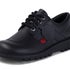 There's only one way to do back to school, and it's always with Kickers. Our Kick Lo has forever been a formal fave - packed with features that give it a smart silhouette but still in a style you'll actually want to wear. This pair are constructed in all-black leather, featuring all the trademark branding that makes us so iconic. From our signature triple stitch to the branded eyelets, we pay attention to ALL the little details to make a pair you can love for ages. Finished with a classic lace fastening, padded collar for all-day-comfort and our instantly recognisable chunky sole that will keep you stepping out in hardwearing, stand-out style.