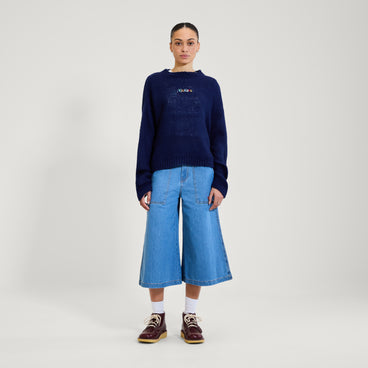 Adult Womens Kickers Boat Neck Wide Sleeve Knit Navy