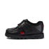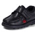 The Fragma Strap, in matte black leather, is a school shoe classic. We’ve updated our heritage moccasin style with a more square, sportier profile and texturised outsole. It has a padded collar to ensure all-day comfort, a low profile for a modern twist, and our woven branding on the back for a pop of colour - perfect for the playground. The hook and loop strap fastening keeps feet secure and supported, making it a great alternative for those who don’t want laces.