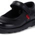 A girly, black matte leather Mary-Jane school staple. The Fragma pop has a hook and loop fastening, highgrip outsole, and padded collar for comfort, making them perfect for school. This sweet style keeps it Kickers with our signature triple stitch detail, branded tabs, and a subtle debossed logo on the heel counter.