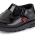 The Fragma T-bar, in black patent leather, is a classic school shoe. With a lightweight outsole, padded collar, and hook and loop fastening, it’s a school favourite. This timeless style keeps it Kickers with our signature triple stitch detail, branded tabs and iconic logo on the heel.