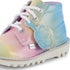 What lies at the end of the rainbow? These Kicks we hope! Super cute and perfect for days in the sun, this mini-me style of our favourite Kick Hi is finished in patent leather with a multi-colour rainbow palette and sparkling silver flecked laces. They may be mini but still pack just as much punch as our most iconic silhouette. Reinvented for little feet, they feature all of our signature details, including a chunky sole, Kickers' fleurette and triple stitch construction. Finished with an internal zip to make dressing a breeze.