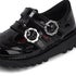 The Kick T-bar Meadow offers a subtle touch of floral to a Kickers school classic. With a delicate floral pattern woven into the shiny patent leather, and flower shaped silver buckles adding a further touch of style, this style is ready to bring a new level of sophistication to the playground.