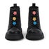 Made for tomorrow's stars, the Kenzi Boot is the Kade's cool little sister. Inspired by the same archives references we used to design our adult's Kade boot, the Kenzi was designed with next generation of trend-setters in mind. Featuring a chunky, yet super lightweight sole with 90s inspired curved edges, they're crafted from black tumbled Leather and finished with removeable pastel floral charms so she can can make them tougher or sweeter, depending on her vibe.