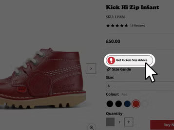 Find a product on site you love and click the “Get Kickers Size Advice’ link. It will open up our sizing tool