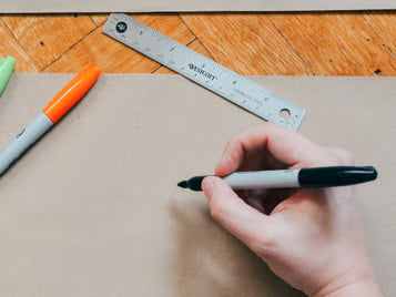 Firstly draw round their foot on a piece of paper. Then measure in mm or inches the length from the longest toe to the back of the heel