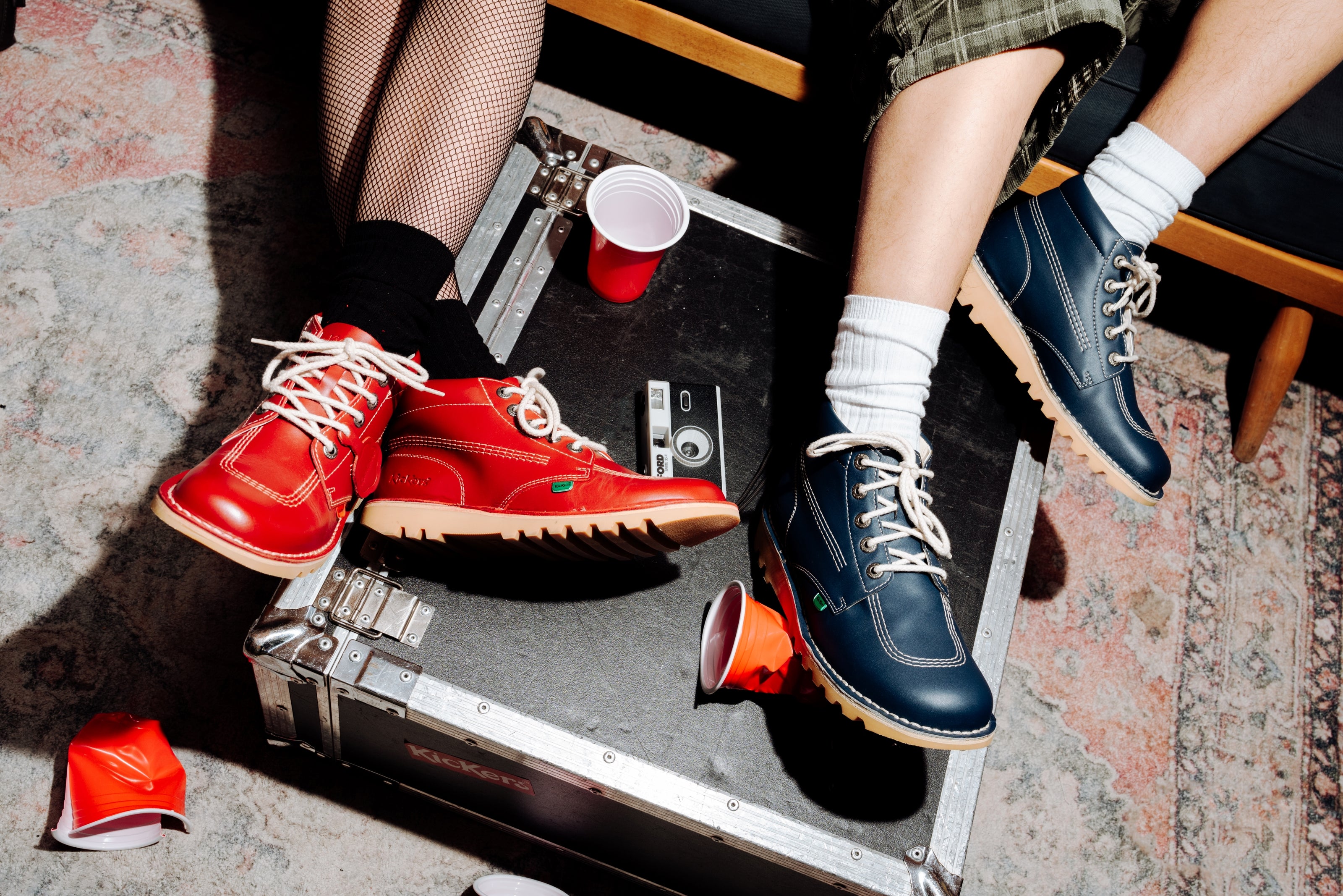 Five years after Kickers launched, the Kick Hi Boot arrived. Elton, Bowie Daltrey and all other 70s greats visited the store on London’s King’s Road. The 80s saw Manchester’s Stone Roses create the ‘Perry Boy’ style with the iconic Kick Hi as a staple of the uniform. In the 90s, Hacienda DJs pushed Kickers bright red boots front and center. Ian Brown kicked things off by challenging Hacienda’s strict no trainers policy with a pair of Kick His, the Stone Roses wore them in their video for ‘Fools Gold’ and a sheep sported a pair on the cover of the ‘Stepping Stone’ single by The Farm. Other fans of the brand? Jarvis Cocker, Noel Gallagher, the Arctic Monkeys and the Kaiser Chiefs.